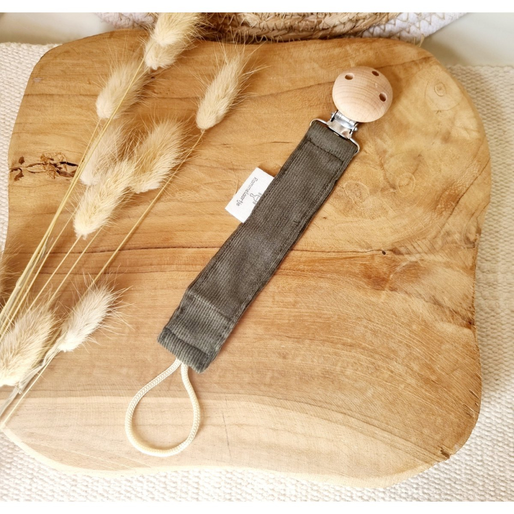 Nooit meer een speentje kwijt! Dit handgemaakte speenkoord van fijne ribstof is heel handig om aan kleding van een doekje/speeltje met de houten clip te bevestigen.